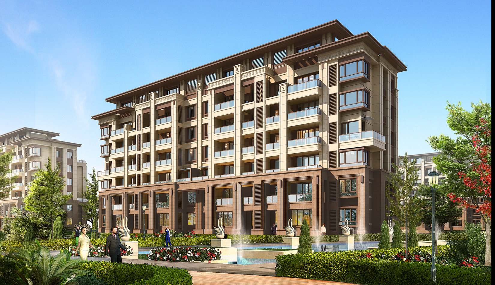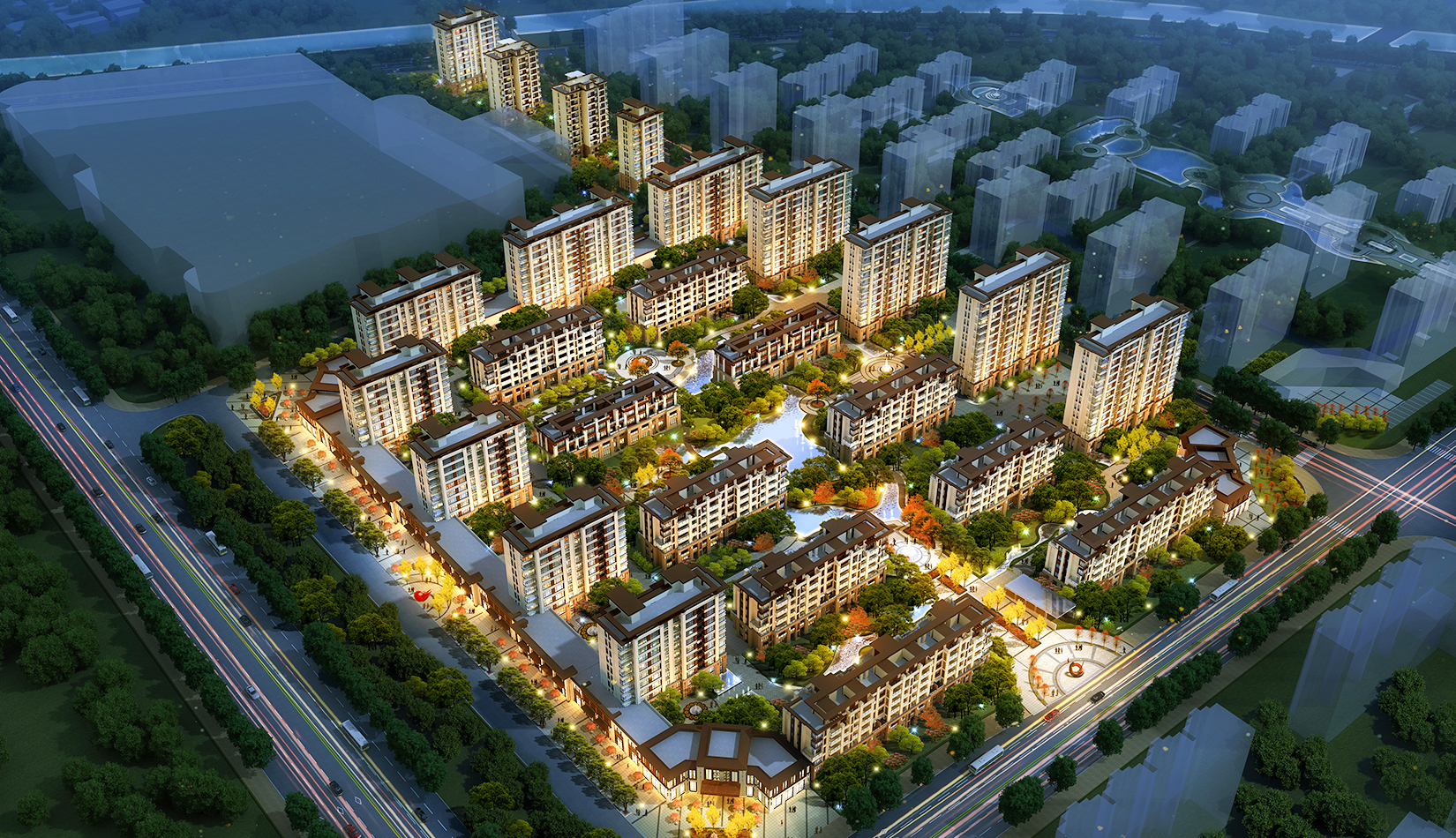 通過對基地場地價值的分析,綜合考慮容積率、建筑密度及航空限高等問題,以小高層住宅、花園洋房、疊拼別墅結(jié)合考慮規(guī)劃布局。景觀主要應以內(nèi)部打造為主。建筑布局外高內(nèi)低,將多層產(chǎn)品放在中間較好的位置,同時形成建筑高度向中心景觀帶疊落的空間感覺,最大化利用中心景觀帶。