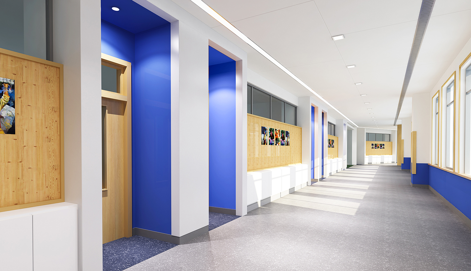 設(shè)計(jì)追求空間設(shè)計(jì)的前瞻性,深入揣摩材質(zhì)、工藝與造型之間的關(guān)系,力圖體現(xiàn)現(xiàn)代化小學(xué)空間輪廓;設(shè)計(jì)堅(jiān)持以“人”為本的校訓(xùn),強(qiáng)調(diào)人性化設(shè)計(jì),因此注重生態(tài)、綠色、節(jié)能、環(huán)保、文化空間功能,輔以材質(zhì)、色彩的表達(dá),為寧夏路小學(xué)營造出了人性的、功能的、標(biāo)志化效果,為孩子創(chuàng)造-一個良好的視覺環(huán)境和心理健康發(fā)展的氛圍。